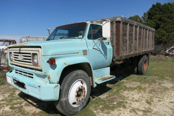 1973 CHEVY C65 DUMP TRUCK WITH 16′ GODWIN TWIN CYLINDER DUMP, 5 SPD TRANS