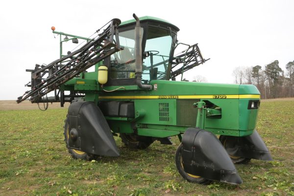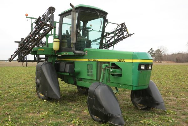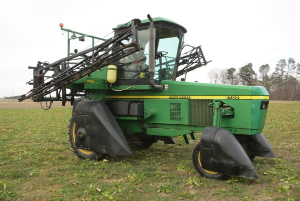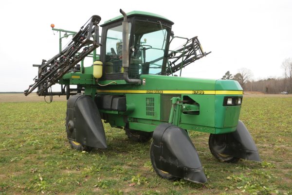 JD 6700 4 WHEEL SPRAYER, 60′ FRONT FOLD BOOMS, JD RATE CONTROLLER, 410 GAL POLY TANK, 7054 HRS, SN: 10067