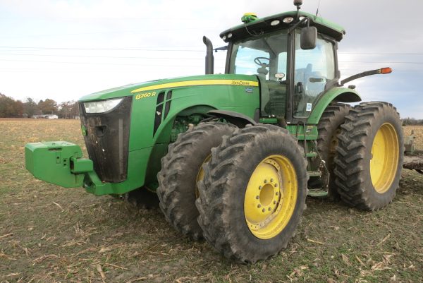 JD 8260R CAB, DSL, MFWD, POWERSHIFT TRANS, ILS FRONT END, DUALS FRONT & REAR, 4 SETS REMOTES, WEIGHTS, QUICK HITCH, 4193 HOURS, SN:067242